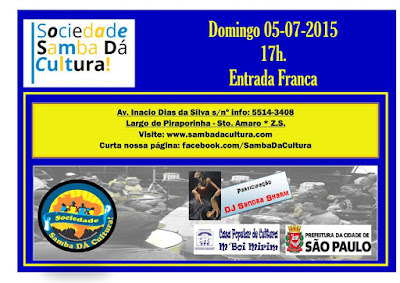 • Dia 05/07 às 17h, tem o Samba Dá Cultura, na casa